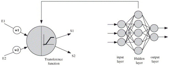 Artificial neural network (ANN) structure [82]. “Reproduced with permission from Ordieres et al., Environmental Modelling & Software; published by Elsevier, 2005)”.