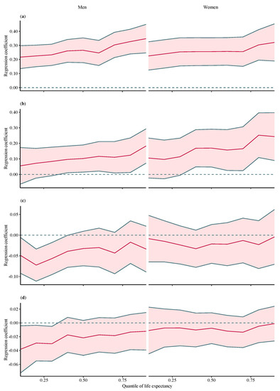 - Neumayer, E.; Plümper, T. Inequalities of Income and Inequalities of Longevity: A Cross-Country Study. Am. J. Public Health 2016, 106, 160–165. [Google Scholar] [CrossRef] [PubMed]