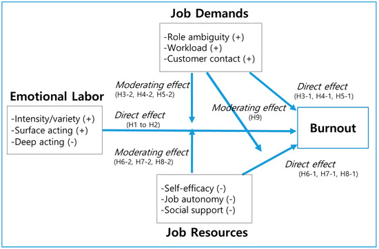 Kim, S.; Wang, J. The Role of Job Demands–Resources (JDR) between Service Workers’ Emotional Labor and Burnout: New Directions for Labor Policy at Local Government. Int. J. Environ. Res. Public Health 2018, 15, 2894. https://doi.org/10.3390/ijerph15122894