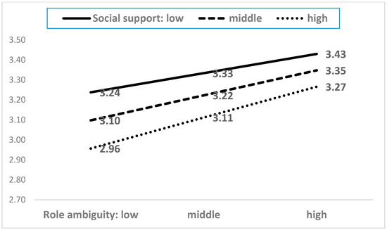 | Social Support | −0.150 *** | 0.028 | −0.128 | −0.148 *** | 0.028 | −0.126 | Role Ambiguity | 0.161 *** | 0.024 | 0.155 | 0.172 *** | 0.025 | 0.166 |