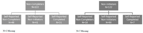 | Statement | Response | Non Completers (n = 122), % (N) | Non Initiators (n = 122), % (N) | p-Value |