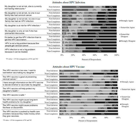 | The HPV vaccine is too new. I want to wait before vaccinating my daughter. | Strongly agree | 10.0 (12) | 36.7 (44) | <0.0001 |