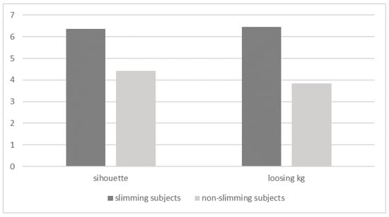 As with the previously analysed goal, losing excess weight proved more important in the case of slimming obese individuals than in that of non-slimming individuals (Figure 1).