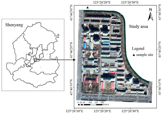 The study catchment area was a residential–educational mixed block in the city of Shenyang, which is the largest industrial city in Northeastern China (Figure 1). Shenyang has a temperate continental monsoon climate, with a mean annual precipitation of 510–680 mm, most of which falls from June to August. The case study catchment area comprises high-density residential (56.1%) and educational (43.9%) areas and is 24.2 hm2. Impervious surfaces cover 69.3% of the catchment, and gently slope from southeast to northwest with an average slope of 0.1%. The sewer system is separated and constructed of concrete pipes, and stormwater runoff flows past conduits to the final outfall at the north of the study area.