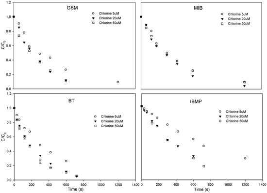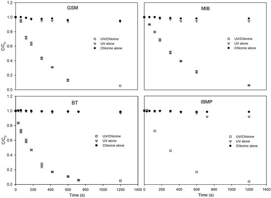 3.1. Degradation Kinetics of T&O Compounds by the UV/Chlorine Process