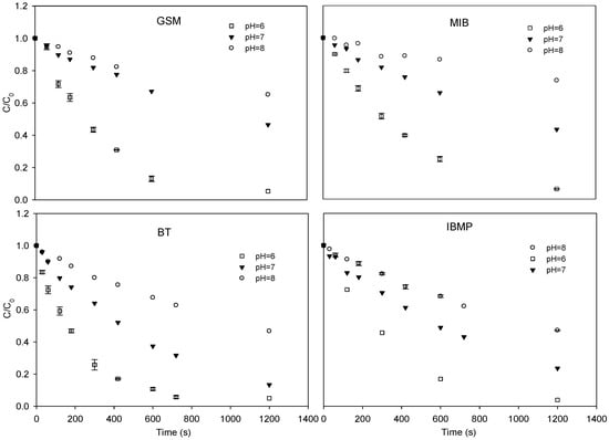 - Wang, C.; Li, C.; Li, H.; Lee, H.; Yang, Z. The removal efficiency and degradation pathway of IPMP and IBMP in aqueous solution during ozonization. Sep. Purif. Technol. 2017, 179, 297–303. [Google Scholar] [CrossRef]