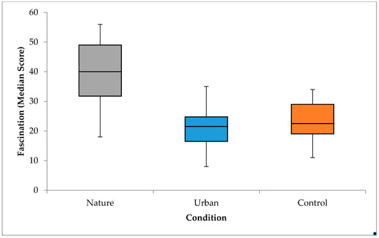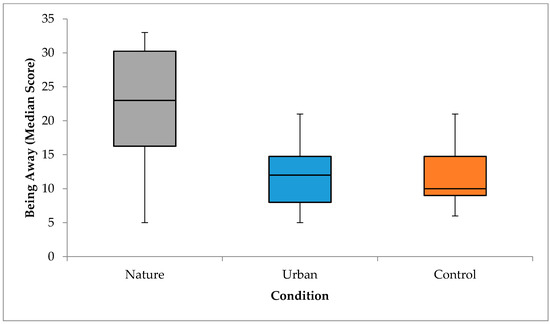These were measured using the 5-item ‘Being Away’ and 8-item ‘Fascination’ subscales of the Perceived Restorativeness Scale [59]. These subscales have been shown to have acceptable reliability [60]. Participants rated their agreement with statements such as ‘being here is an escape experience’, or ‘this place is boring’, using a Likert scale from one (not at all) to seven (completely). Participants in the urban and nature conditions were asked to consider “the location you viewed in the video”; participants in the control condition were asked to consider “their surroundings”, i.e., the experimental room.