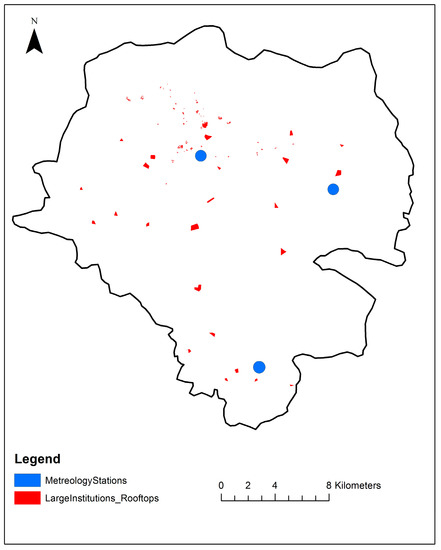 The categories of large public institutions and the corresponding digitized rooftop areas.