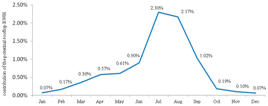 For example, in July, 164,817 m3 of the potable water can be replaced with water harvested from large public institutions, corresponding to the monthly water demand of some 1637 people. It should be stressed that this is the maximum quantitative volume, not considering restrictions associated with tank size, water losses, water pollution, or other issues likely to reduce the volume that can be attained in practice.
