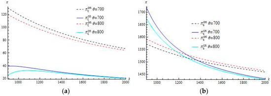 Considering the diseconomies of carbon reduction, the fixed cost we denote as emission-reducing cost will increase in carbon decrement with increasing marginal costs effect, namely, and . Related literature ([33,34,35]) generally also uses quadratic functions to describe the quantitative relationship between the environmental improvement and the corresponding expenditure.
