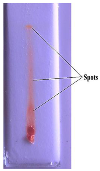 Thin Layer Chromatography was analysed. B. bassiana-28 extract showed three spots with Rf values of 0.3333, 0.4444, and 0.5555, respectively (Figure 2).