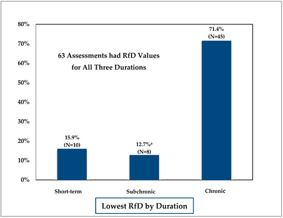 Comparison of reference doses (RfDs) across durations. a Includes four assessments in which RfD was slightly lower than the chronic RfD due to dose selection.