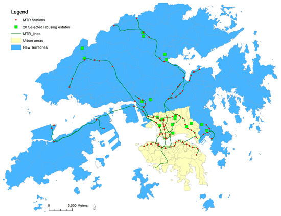 Hong Kong is a high-density city located on the southeast coast of China with a land area of 1104 km2. Its population reaches 7.3 million in 2015. Hong Kong is known for its new town developments, characterized with TOD features, which were initiated in 1970 as a response to a large influx of immigrants from mainland China. Hong Kong is also well known for its citywide public housing schemes providing affordable accommodations for its low-income residents. In 2015, there were about 2 million residents in 160 public housing estates across all districts [24].