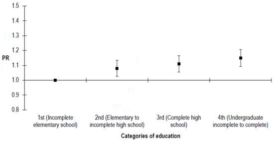 Prevalence ratio (PR) for bicycle ownership according to education and adjusted by age and sex.