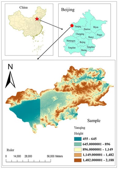 This study focused on the Yanqing District of Beijing, an extensive, unique, geological area on the north-west fringe of Beijing. Yanqing District has been recognized as a “National Green County” and “National Garden County”. It is known as an ecological civilization pioneer in China. In 2013, this area was included in the United Nations Educational, Scientific and Cultural Organization (UNESCO) world geological park directory.