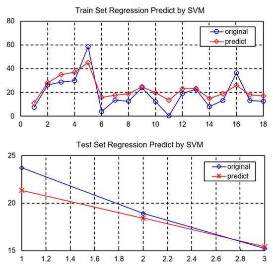 It can be found from the figure that the training effect of the sample and the prediction effect are good, among which the correlation coefficient reaches 0.9921 and the mean square error is only 0.0001. The SVM can obtain a fitting effect in the case of a small sample in the neural network; the fitting degree may be affected when the number of samples is very small. Although the statistical data of storm surges in China is relatively deficient and changes in the statistical caliber are varied, the effect of storm surge disaster prediction is good in the case of small samples. Such a sample is therefore useful as a reference for the prediction of storm surge disasters.
