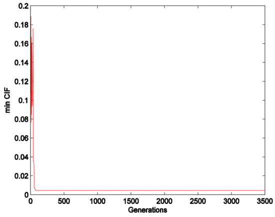 The CIF can be optimized and the weights can be solved for using the proposed algorithm. The convergence graph is presented in Figure 2. The weights are acquired as W = [0.6541, 0.2782, 0.0677].