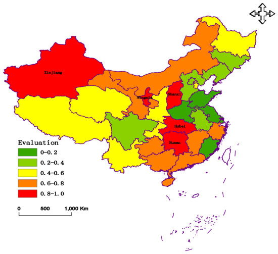 During the middle and the end of January in 2008, South China experienced a rare and severe cold surge that produced extremely damaging frosts, snow, and ice storms. Prolonged, heavy precipitation occurred over an extensive area of South China [41,42]. There were 31 provinces and cities that were evaluated. The data of these criteria are presented in Figure 3, Figure 4 and Figure 5, respectively.