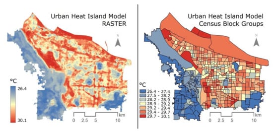 Voelkel, J.; Hellman, D.; Sakuma, R.; Shandas, V. Assessing Vulnerability to Urban Heat: A Study of Disproportionate Heat Exposure and Access to Refuge by Socio-Demographic Status in Portland, Oregon. Int. J. Environ. Res. Public Health 2018, 15, 640. https://doi.org/10.3390/ijerph15040640
