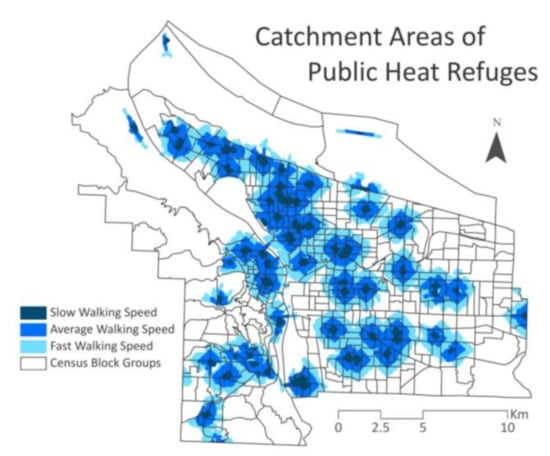 | ●Accessibility to public heat refuges (fast, average, and slow walking speeds) |