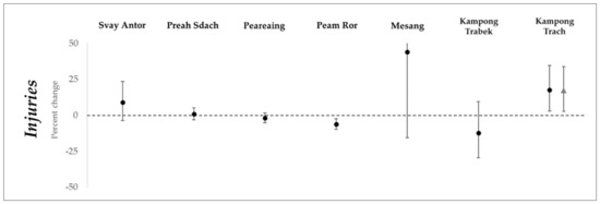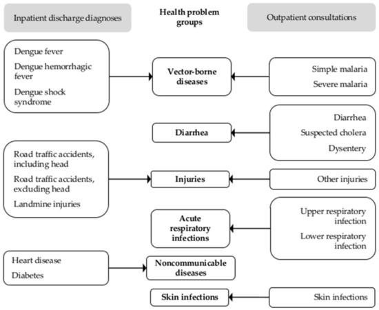 Saulnier, D.D.; Hanson, C.; Ir, P.; Mölsted Alvesson, H.; Von Schreeb, J. The Effect of Seasonal Floods on Health: Analysis of Six Years of National Health Data and Flood Maps. Int. J. Environ. Res. Public Health 2018, 15, 665. https://doi.org/10.3390/ijerph15040665