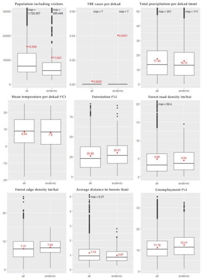 - Kiffner, C.; Zucchini, W.; Schomaker, P.; Vor, T.; Hagedorn, P.; Niedrig, M.; Rühe, F. Determinants of tick-borne encephalitis in counties of southern Germany, 2001–2008. Int. J. Health Geogr. 2010, 9, 42. [Google Scholar] [CrossRef] [PubMed]