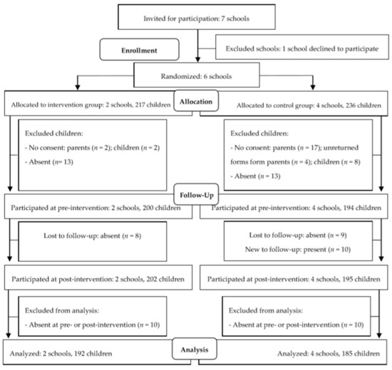 - Francis, M.; Nichols, S.S.D.; Dalrymple, N. The effects of a school-based intervention programme on dietary intakes and physical activity among primary-school children in trinidad and tobago. Public Health Nutr. 2010, 13, 738–747. [Google Scholar] [CrossRef] [PubMed]