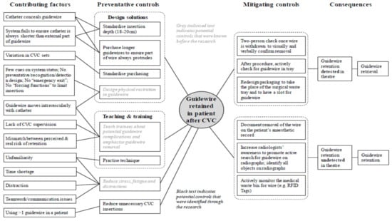 - Ward, J.R.; Chatzimichailidou, M.M.; Horberry, T.; Teng, Y.-C.; Clarkson, P.J. Guidewire Retention after Central Venous Catheterisation: Prevention and Mitigation using Bow-Tie Analysis. In Proceedings of the Contemporary Ergonomics and Human Factors, Daventry, UK, 19–21 April 2016; pp. 95–99. [Google Scholar]