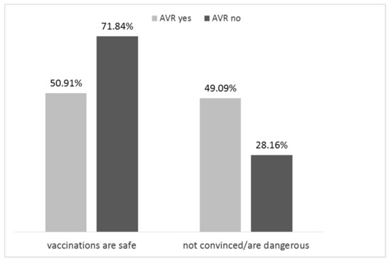On the other hand, our results demonstrated that factors such as place of residence, age of the respondents, the economic status of families and the number of children in the family had no significant effect on the declared opinions about safety of vaccination. Similarly, the report published in 2017 by CBOS revealed that the impact of socio-demographic variables on opinion diversification was small [16]. According to our results, negative results of qualification process for vaccination as well as physician diagnosis of contraindications could be very important factors of perceiving vaccinations’ safety. Moreover, it appears that another important factor related to perception of immunization safety was the experience of AVR in any of their own children. This is in line with the published evidence [23,24].