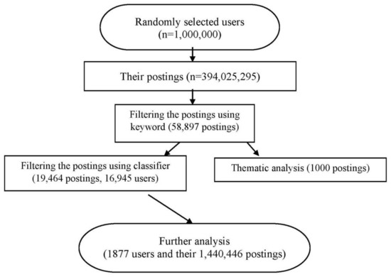 Flowchart of procedure for selecting postings related to depression.