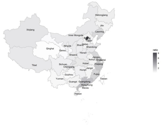 Geographical variations in depression posts were observed. A possible reason that the individuals who lived in rich areas, including big cities, tended to express depression may be that the people living in these areas experience fiercer competition and greater social fragmentation. Another reason may be that people living in these areas are knowledgeable about depression, which resulted in disclosure of depression. More research is required to investigate the reason behind this finding. Our discovery on the geographic distribution of depressed users may be helpful in assisting the Chinese government to distribute health resources efficiently, given its large population and limited resources.