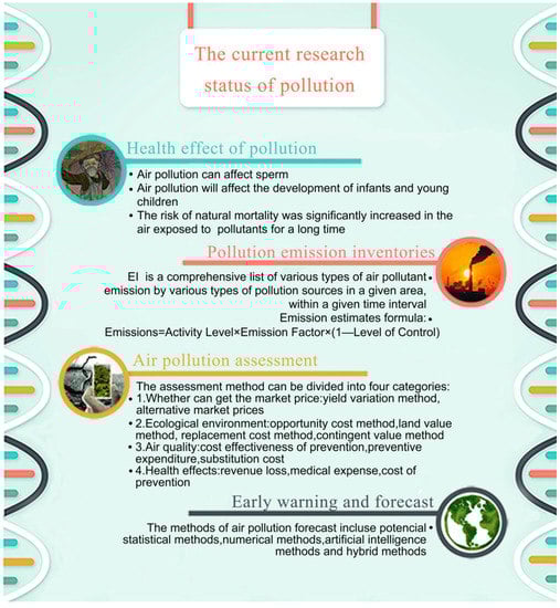 Air pollution is regarded as an unavoidable reality. Over the past few years, much news about environmental pollution accidents have been reported, especially air pollution events. If the environmental problems are ignored in process of social progress, the ecological environment of the earth will gradually deteriorate, so the Earth is always in danger and every day will be “2012”. It is well-known that, compared with land pollution and water pollution, the consequences of air pollution are more serious. Scholars have conducted a series of studies on air pollution, from pollution sources to pollution management and pollution forecasts, including the problem of emissions inventories, pollution assessments, and pollution alarms. These topics lay the foundation for the research into air pollution covered in the following sections.