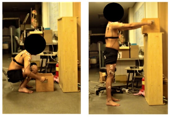 - Vahdat, I.; Rostami, M.; Ghomsheh, F.T.; Khorramymehr, S.; Tanbakoosaz, A. The effects of task execution variables on the musculature activation strategy of the lower trunk during squat lifting. Int. J. Ind. Ergon. 2016, 55, 77–85. [Google Scholar] [CrossRef]