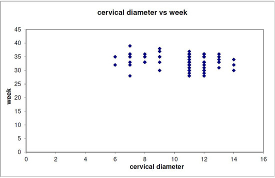 The association of cervical diameter and pregnancy week (p = 0.210).