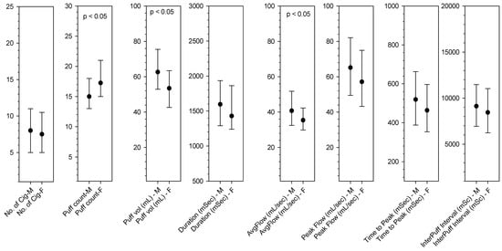 3.2. Comparison of Puffing Behaviors between Male and Female Smokers