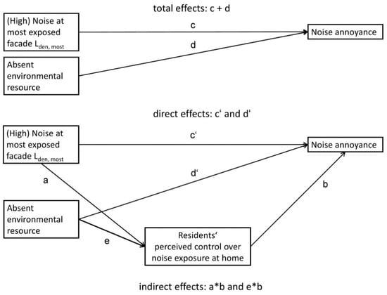 - To investigate whether the independent associations of exposure to road traffic noise and of absent dwelling-related environmental resources with noise annoyance are significantly mediated by perceived noise control (Figure 1).
