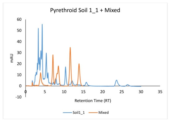 - The duplicates and the corresponding spiked samples were overlaid for the identification of possible insecticide residues.