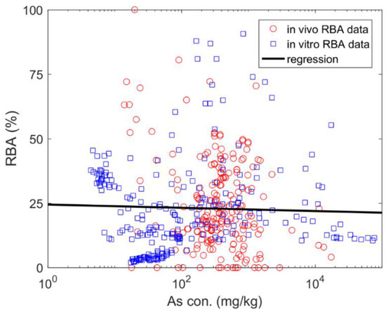 As mentioned, both in vivo and in vitro approaches were commonly used to measure RBA in the previous literature, and therefore the data involved in the two methodologies were both used. The BAC data were converted to RBA data by using the IVIVR well summarized in Table 1 [5,18,19], which were defined as in vitro RBA in this study.