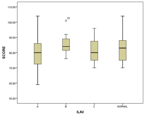 The results of the marksmanship task are shown in Figure 3. Overall, the differences between average marksmanship scores achieved whilst wearing the different ILAV or N conditions were small and did not reach statistical significance (average marksmanship scores: ILAV A 80.7, ILAV B 85.6, ILAV C 81.5, normal station wear 83.8; F(3,30) = 2.124, p = 0.118). Considering this, as shown in Figure 1, below, wearing ILAV B was associated with the least variability in shoot scores.