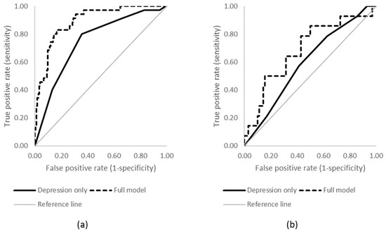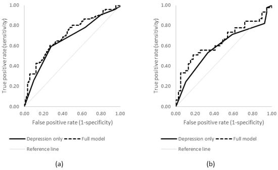 ROC curves predicting lifetime suicide attempt for (a) females and (b) males.