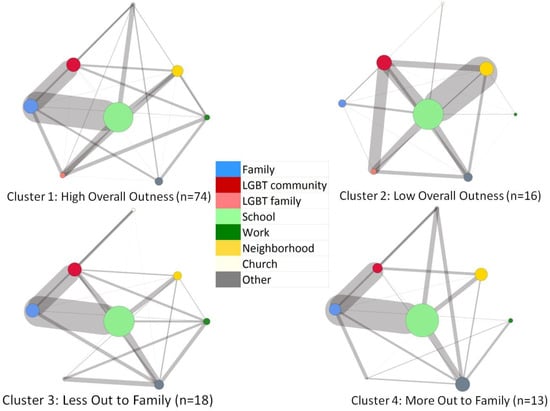 16], it is possible that participants in this cluster represent more economically marginalized LGBTQ young people relative to the other cluster types. However, the Low Overall Outness cluster also showed the highest connection to LGBT community. In addition to having the highest proportion of LGBT network alters, participants in this cluster type also showed stronger connectivity between the LGBT community and LGBT family and between the LGBT community and neighborhood. These patterns may reflect the importance of LGBT relational contexts for these participants, for whom connection to LGBT family and community may be an important compensatory source of support if their families are not supportive of their identities.
