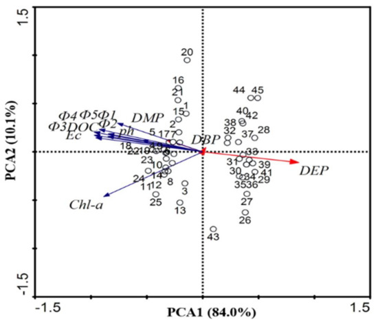 3.7. Fluorescence Regional Integration Fluorescent Components Versus Phthalate Acid Esters