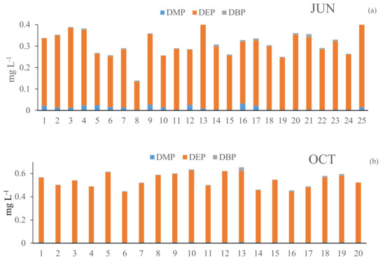3.2. Temporal and Spatial Variations of Phthalate Acid Esters