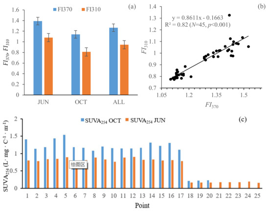 3.5. Fluorescence Regional Integration Fluorescence Component Versus Chromophoric-Dissolved Organic Matter