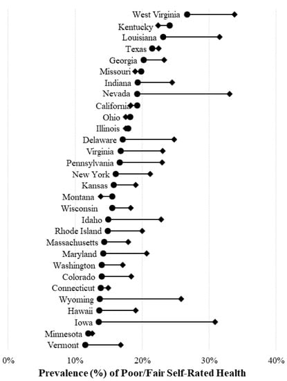 3.2. Association between State Policy Environments and Self-Rated Health Disparities