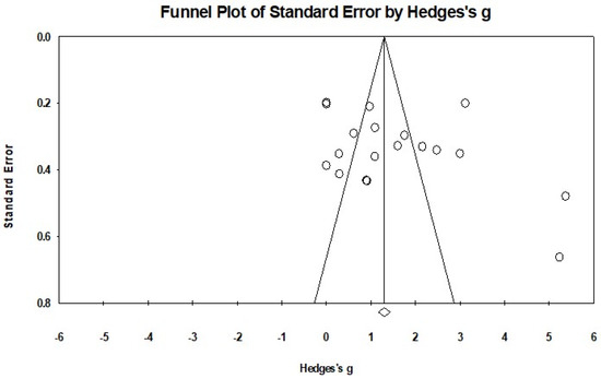 The Funnel Plot of included dependent effect sizes (k = 18).