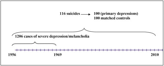 - Brådvik, L.; Berglund, M. Late mortality in severe depression. Acta Psychiatr. Scand. 2001, 103, 111–116. [Google Scholar] [CrossRef] [PubMed]