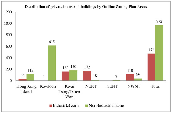 Distribution of private industrial buildings by Outline Zoning Plan Areas (Source: Planning Department, 2015 Report on 2014 Area Assessments of Industrial Land in the Territory).
