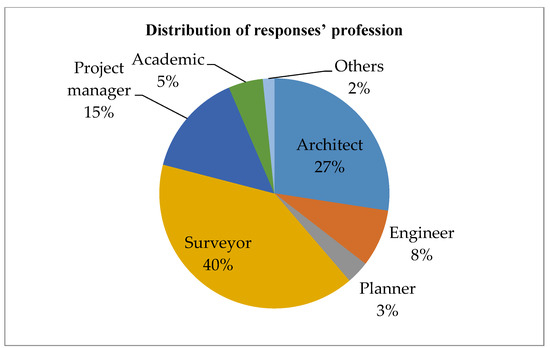 Questionnaire surveys are chosen as the primary data collection mechanism as they are effective for learning about matters that cannot be directly observed [67]. Surveys were conducted with a variety of related professionals, such as surveyors, architects, planners, engineers, project managers, and academics, who were able to contribute to this study through their tacit and explicit knowledge of the adaptive reuse of industrial buildings.