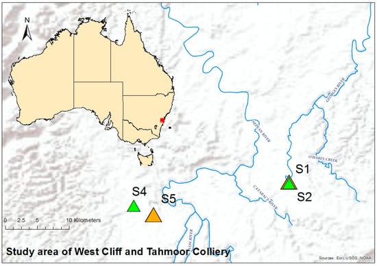 - Ali, A.-E.; Strezov, V.; Davies, P.; Wright, I. Environmental impact of coal mining and coal seam gas production on surface water quality in the sydney basin, Australia. Environ. Monit. Assess. 2017, 189, 408–423. [Google Scholar] [CrossRef] [PubMed]